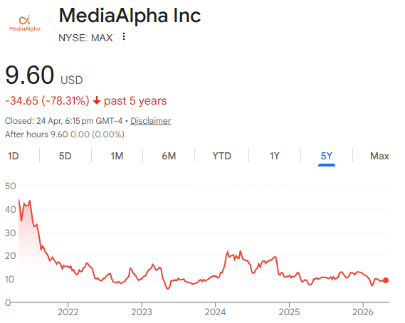 3. MediaAlpha (MAX, Market cap $600M)
