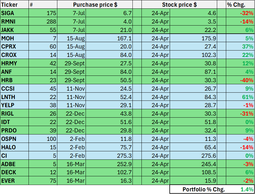 That will bring me to 24 stocks in the portfolio. The goal is to get to a full portfolio of ~25 names, so I will be essentially fully invested.