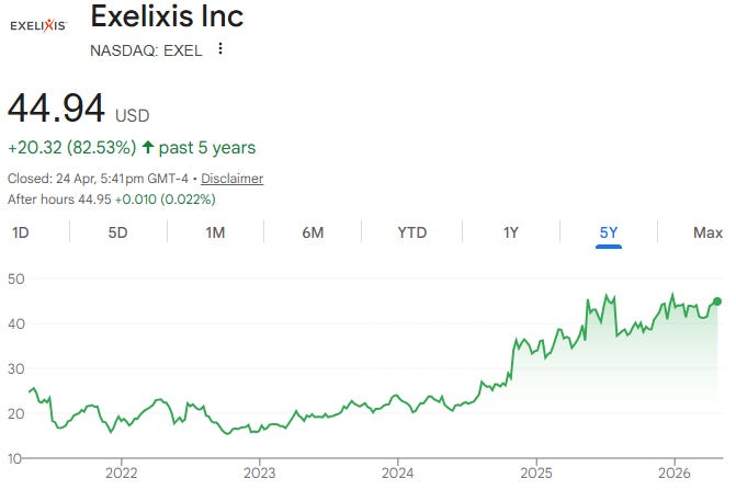 2. Exelixis (EXEL, Market cap $12B)
